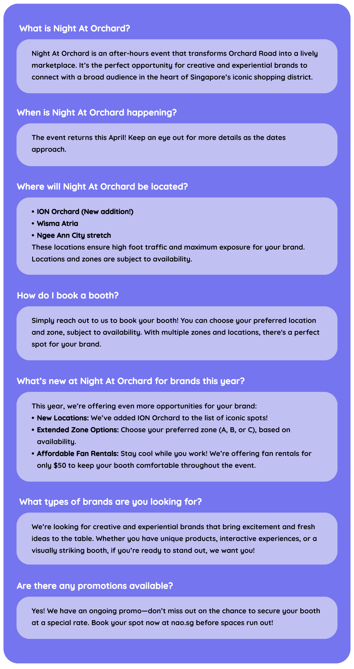 Have more questions? DM us at @nightatorchard on Instagram