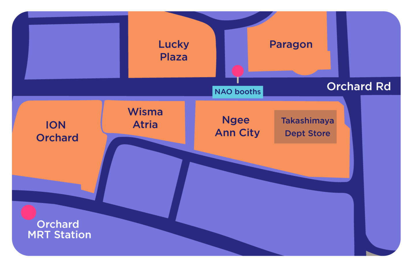 We're located right in the heart of Singapore's shopping hub along Orchard Road. With Orchard MRT just a minute away, and a steady flow of foot traffic, we're the perfect place for businesses to reach out to a new audience, and for shoppers to stop by for a look!