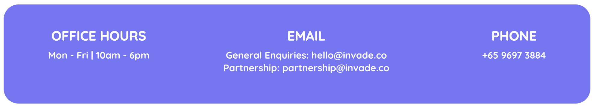 For more brands/spaces enquiries, email us at spaces@invade.co